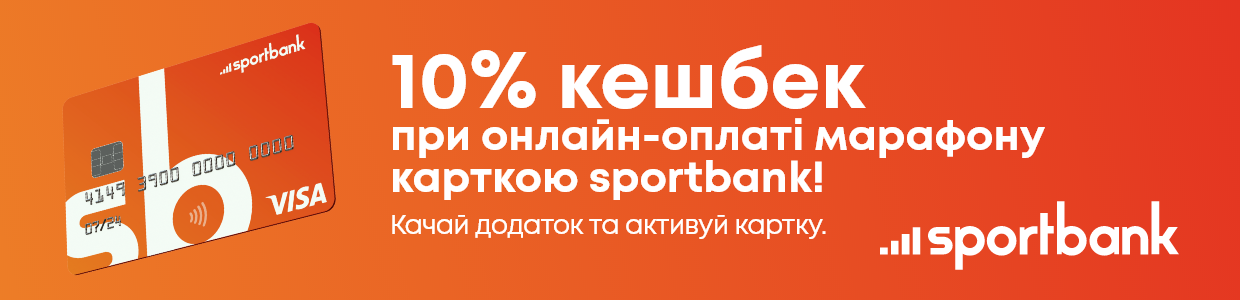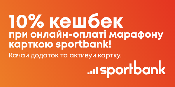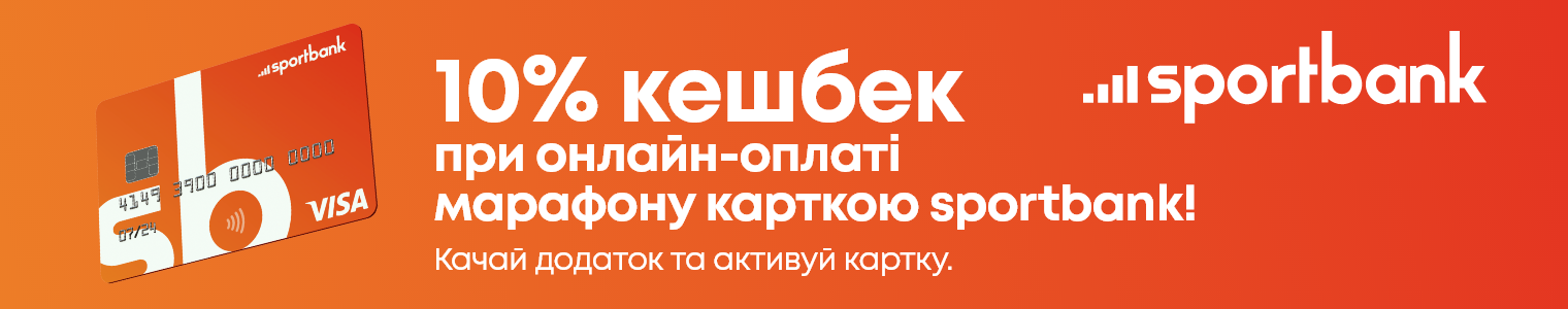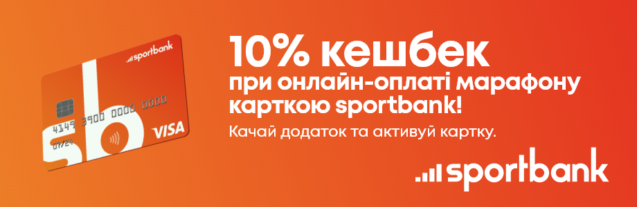 При онлайн оплаті марафону карткою sportbank ви отримуєте кешбек 10%.